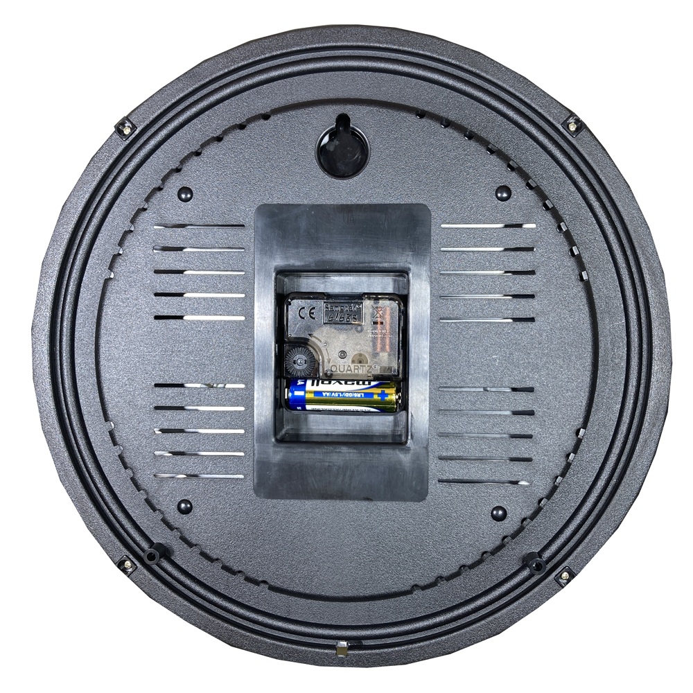 日本製の温度湿度センサー付きのアナログ掛け時計スイープムーブでカチコチ音が無いタイプの時計です。